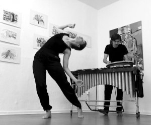 The two artists assembled to continue and evolve their artistic interest in form of collaboration. They brought their own practices together to address the correlation between movement and sound through impulse and response, silence, stillness, composition and improvisation.